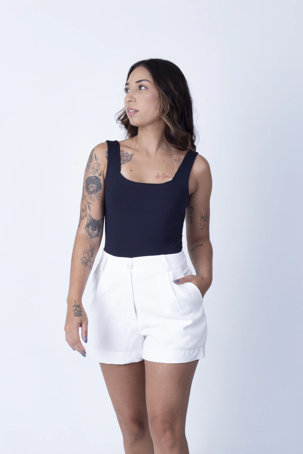 Short com cós Jade é uma peça que combina sofisticação e conforto. Sem elástico nas costas, ele possui um corte mais estruturado e um caimento impecável, ideal para quem busca um visual mais sofisticado e elegante.